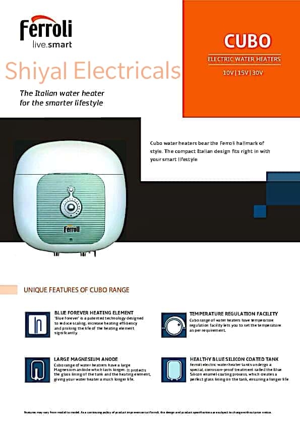 Ferroli water geyser 15ltrs, 25ltrs, 30ltrs upto 200 ltrs.