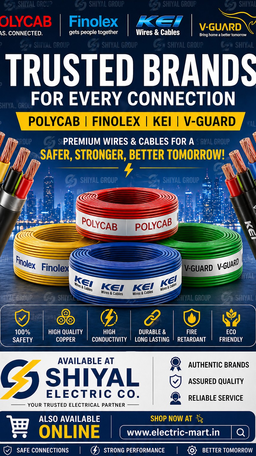 Shiyal Electric Co is a trusted dealer, distributor, and wholesaler of premium wires and cables in Bangalore, offering top brands like Polycab India Limited, Finolex Cables Limited, and KEI Industries Limited. We supply high-quality electrical wires, power cables, industrial cables, and house wiring solutions at competitive prices.